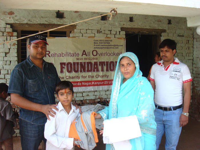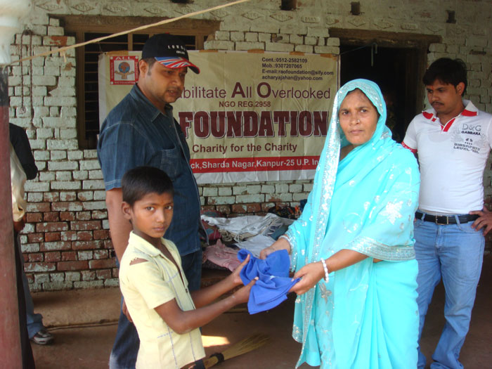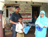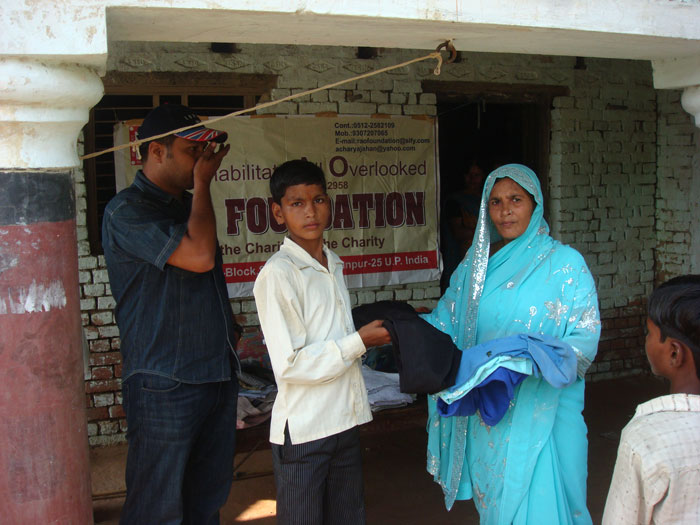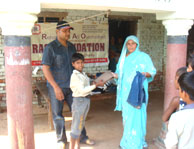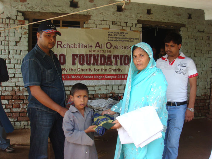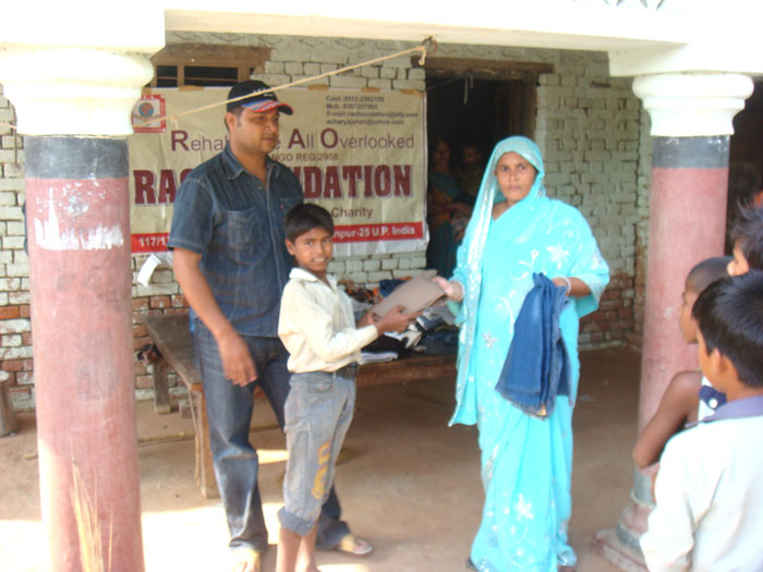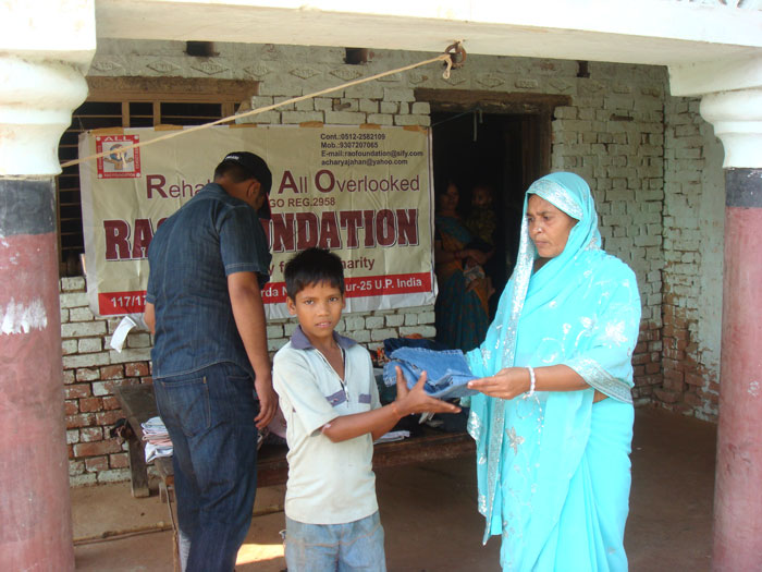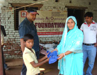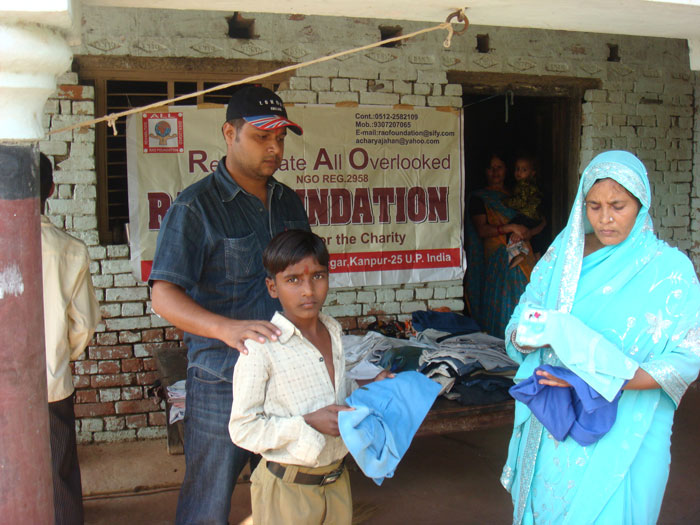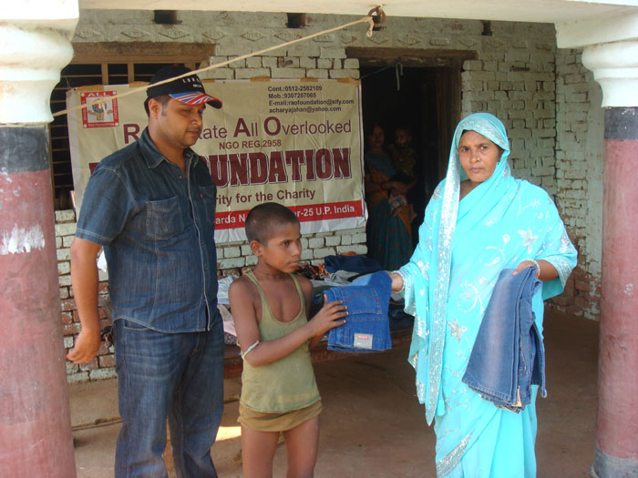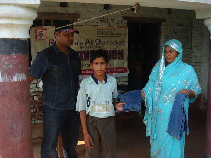 Rao Vikram SIngh & Pushpa Awasthi Distributing Clothes